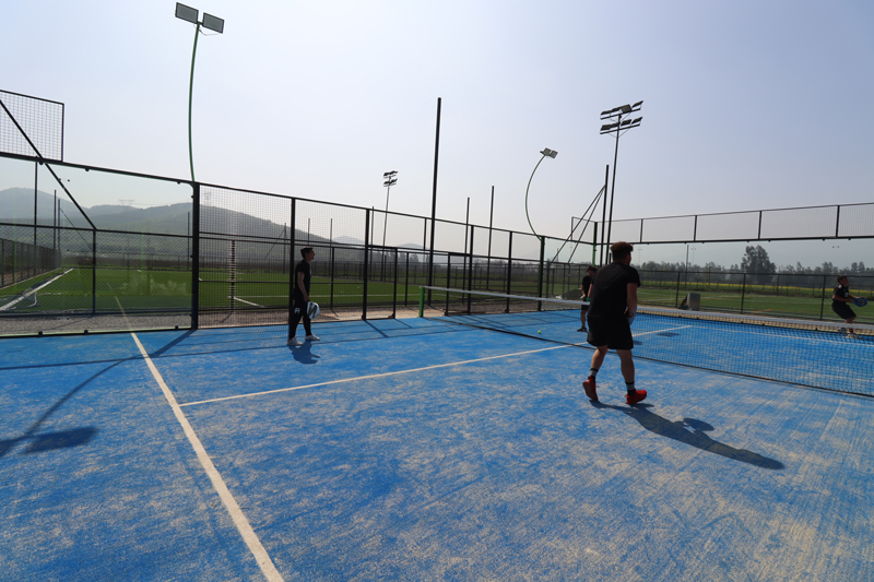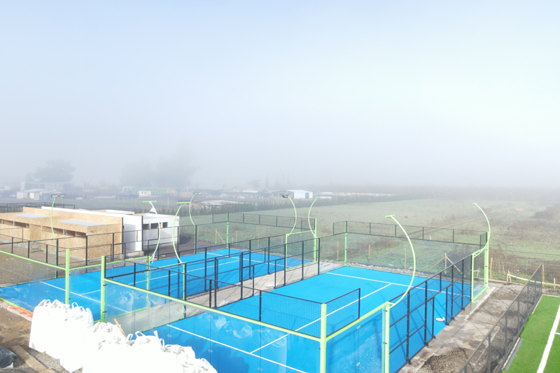 Moderno complejo que cuenta con canchas de padel, fútbol, futbolito, camarines, cafetería, quincho, y zona de esparcimiento.